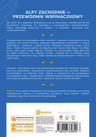 Przedstawiony w przewodniku wybór skalnych i lodowych dróg zaczyna się na południu od szczytu Monviso, obejmuje najważniejsze wierzchołki w Alpach Delfinatu i Alpach Graickich oraz bardzo dokładnie prezentuje masyw Mont Blanc. Wybór tras jest szeroki, od klasyków, jak trawers Mont Blanc czy Meije, przez mało znane drogi masywu Vanoise po nowoczesne drogi sportowe na Igłach Chamonix czy Aiguilles Dorées. Znajdziemy tu również opisy nietypowych wariantów dróg, które dostarczą wrażeń, a są mało znane szerszej publiczności.