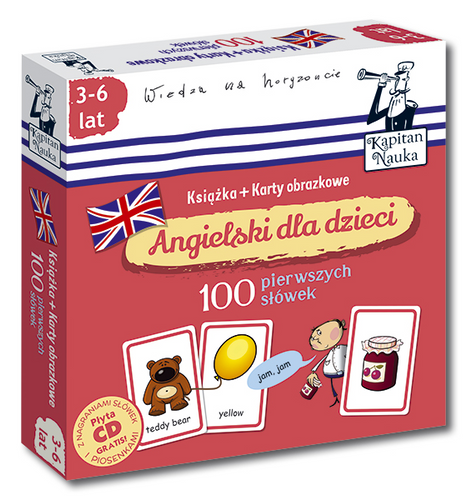 Angielski dla dzieci 100 pierwszych słówek to wyjątkowy zestaw dla młodszych dzieci przeznaczony do nauki języka angielskiego w domu, w przedszkolu i szkole. Zakres słownictwa dotyczy najbliższego otoczenia dziecka, obejmuje takie zagadnienia jak: kolory, części ciała, ubrania, pory roku i dni tygodnia, zabawki oraz ulubione smaki.