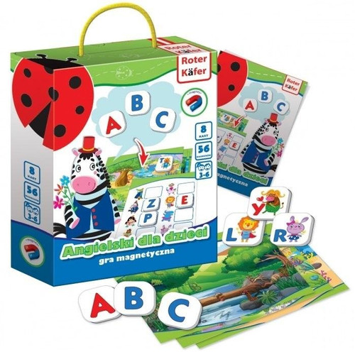 Gra z magnesami do nauki języka angielskiego pomoże dziecku podczas zabawy nauczyć się liter alfabetu angielskiego, zapamiętać ich nazwy, zilustruje użycie liter w słowach. A ponadto, wzbogaci zasób słownictwa dotyczący nazw zwierząt w języku angielskim. Gra pozytywnie wpływa na rozwój uwagi i pamięci wzrokowej, logicznego i abstrakcyjnego myślenia. Oglądaj litery razem z dzieckiem; ćwicz fonetykę, akcentując wymowę tej litery alfabetu; układajcie razem słówka. Na kartach znajdziesz zróżnicowane zadania, które pomogą nie tylko utrwalić wiedzę, ale również ukształtują umiejętność skupienia uwagi, domyślność, logikę i pamięć.