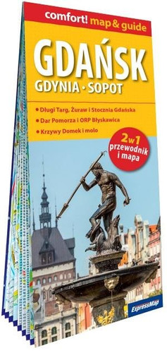 Długi Targ, Żuraw i Stocznia Gdańska Dar Pomorza i ORP Błyskawica Krzywy Domek i molo Spacer Traktem Królewskim w Gdańsku, zwiedzanie okrętu ORP Błyskawica w Gdyni, a może wizyta w sopockim Krzywym Domku? Comfort! map&guide "Gdańsk, Gdynia, Sopot" pomoże dotrzeć do wszystkich ciekawych zakątków Trójmiasta. To wyjątkowe połączenie mapy i przewodnika zawiera wszystkie informacje niezbędne na krótki wyjazd. Praktycznie i treściwie - coś dla zabieganych oraz ceniących wygodę i prostotę: mapy w skalach użytecznych dla turystów (1:26 000, centrum Gdańska 1:13 000), poręczny format, wygoda składania i trwałość, zajmujące opisy 40 najciekawszych miejsc wartych odwiedzenia, łatwa nawigacja: atrakcje z przewodnika ponumerowane i zaznaczone na mapie, przydatne informacje praktyczne: dni i godziny otwarcia obiektów, ceny biletów, transport publiczny, podpowiedzi, co zjeść i wypić oraz dokąd wybrać się na zakupy, kalendarium najciekawszych imprez cyklicznych. Powyższy opis pochodzi od wydawcy.