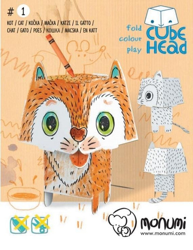 Cube head. Kot. Złóż i pokoloruj