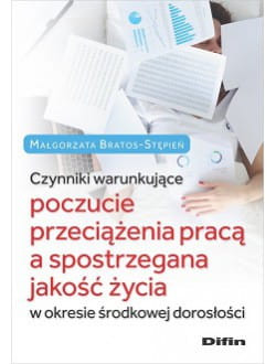 Książka łączy w sobie dwa obszary: psychologię pracy oraz psychologię jakości życia. Dotyczy powszechnego dziś problemu przeciążenia pracą, jego genezy oraz konsekwencji. W szczególności ilustruje związek subiektywnej oceny przeciążenia pracą z subiektywną oceną jakości życia, jego podmiotowe uwarunkowania, moderatory i mediatory. Czytelnik znajdzie w niej opis następujących zagadnień: stresory zawodowe i konsekwencje ich działania, przeciążenie pracą w perspektywie obiektywnej i subiektywnej (ilościowe i jakościowe), rozróżnienie między przeciążeniem pracą a pracoholizmem, uwarunkowania subiektywnej oceny jakości życia opisane jako aktywna vs. pasywna postawa wobec życia. Poza obszerną analizą teoretyczną przedstawione zostały wyniki badań przeprowadzonych w środowisku lekarzy w okresie środkowej dorosłości. Książka może stanowić lekturę zarówno dla przedstawicieli środowiska akademickiego, zainteresowanych takimi dziedzinami naukowymi jak psychologia pracy i organizacji oraz psychologia jakości życia, jak i psychologów praktyków. Ponadto może być przydatna dla specjalistów z obszaru HR w zakresie doboru pracowników i zarządzania nimi.