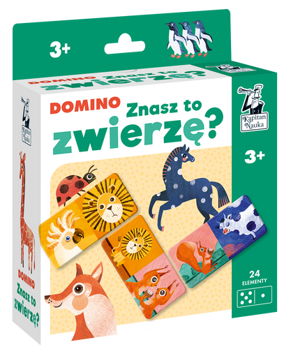 „Domino. Znasz to zwierzę?” (3+) to wspaniała gra logiczna, która wprowadza najmłodsze dzieci w barwny świat zwierząt, przedstawionych z humorem i wrażliwością. Celem zabawy jest dopasowanie kafelków ze zwierzętami, tak aby jak najszybciej wykorzystać wszystkie elementy. Gra nie tylko bawi, ale także rozwija myślenie logiczne, spostrzegawczość oraz percepcję wzrokową.