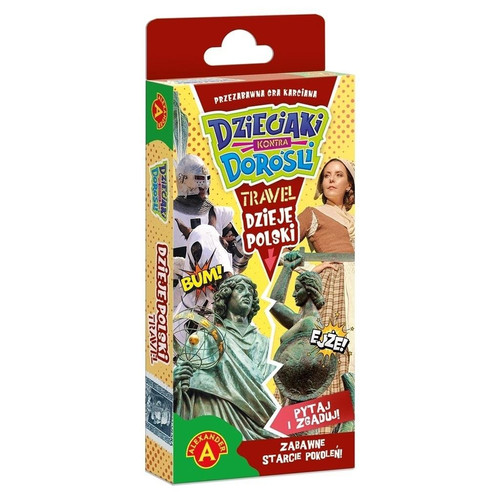 "Dzieciaki Kontra Dorośli Dzieje Polski Travel" to gra planszowa, która zapewni świetną zabawę całej rodzinie. Dzieci rywalizują z dorosłymi, odpowiadając na ciekawe pytania dotyczące historii naszej ojczyzny. Dzięki dwóm oddzielnym zestawom kart z pytaniami o innym poziomie trudności dedykowanym dzieciom oraz rodzicom, szanse na wygraną są takie same dla obu drużyn.