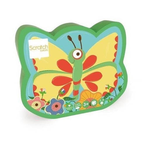 W zestawie znajdują się: 20 dużych obrazków (motyle, kwiaty, gąsienice), 3 duże drewniane kostki, instrukcja w języku polskim.
