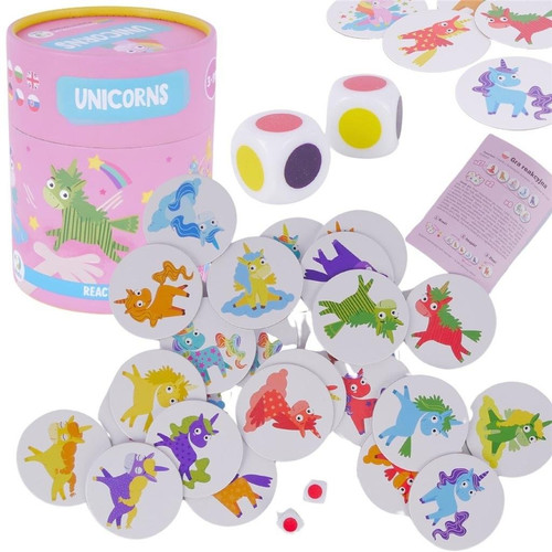 Wiek: 3+, Gra zawiera: 27 żetonów oraz dwie kostki.