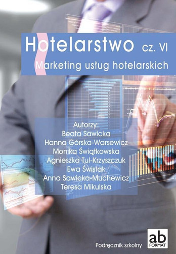 Hotelarstwo cz. VI Marketing usług hotelarskich jest podręcznikiem przeznaczonym dla uczniów technikum kształcącego w zawodzie technik hotelarstwa 422402. Publikacja została przygotowana zgodnie z aktualną podstawą programową kształcenia w tym zawodzie, zgodnie z Rozporządzeniem Ministra Edukacji Narodowej z dnia 7 lutego 2012 r. w sprawie podstawy programowej kształcenia w zawodach (DzU z 17.02.2012 r. poz. 184) oraz ze stanem prawnym obowiązującym w kwietniu 2015 roku.Autor