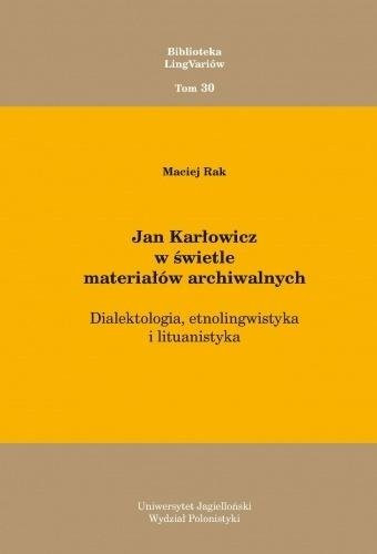 Książka dotyczy działalności naukowej Jana Karłowicza, a dokładniej trzech dziedzin, do których wniósł on znaczny wkład dialektologii, etnolingwistyki i lituanistyki. Podstawą materiałową są tu archiwalia tego badacza (kartoteki Słownika gwar polskich, Słownika mitologii polskiej i Słowniczka mitologii litewskiej), odnalezione w 2017 r. w Archiwum Nauki PAN i PAU w Krakowie. Celem opracowania jest włączenie tych dokumentów w obieg naukowy oraz ponowne przyjrzenie się Słownikowi gwar polskich. Najprawdopodobniej przez ponad sto lat, czyli od ukończenia jego druku w 1911 r. nikt nie zaglądał do tych rękopiśmiennych materiałów m.in. dlatego, że były wadliwie skatalogowane.