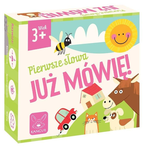 "Już mówię" to gra edukacyjna, która pomaga dzieciom rozwijać umiejętności mowy i rozpoznawania literek. Dzięki kolorowym kartom z obrazkami i napisami, dzieci uczą się nazywać przedmioty, zwierzęta oraz postacie, a także poznają podstawy czytania.