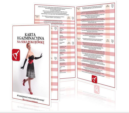 Karta egzaminacyjna na seks pokojówkę to erotyczna przygoda, w której partner wciela się w rolę egzaminatora - pana domu, a partnerka w rolę pokojówki. Uczynnej i seksownej pokojówki, która staje przed swoim egzaminatorem, wyposażonym w listę umiejętności wymaganych przez oficjalny program nauczania seks pokojówek. To egzaminator decyduje, w jakiej kolejności będą wykonywane zadania egzaminacyjne i wystawia pokojówce odpowiednią ocenę. Jeżeli ocena będzie niska, partnerka może próbować starać się o poprawienie swojego wyniku - do czego zachęcamy. Polecamy sprezentowanie pokojówce odpowiedniego stroju, by przygoda była jeszcze bardziej smakowita.