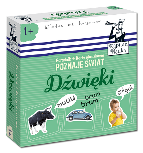 Karty obrazkowe Poznaję świat Dźwięki to wyjątkowy zestaw (poradnik + karty), który kształtuje umiejętność rozpoznawania dźwięków i przyporządkowywania ich do odpowiednich obrazów, aktywnie wspomaga rozwój mowy u najmłodszych dzieci, poszerza zasób słownictwa oraz uczy właściwego posługiwania się głosem.