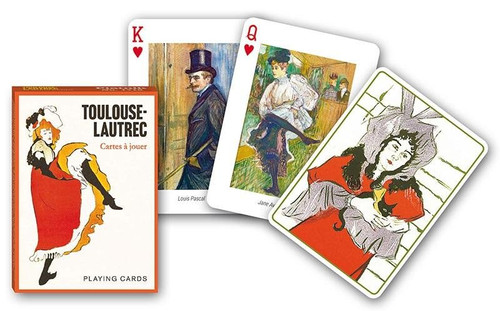 Karty do gry z oryginalnymi awersami przedstawiającymi dzieła malarskie słynnego artysty Henri de Toulouse-Lautrec. Talia składa się z 54 plastikowanych kart o wymiarach 63 x 88 mm.