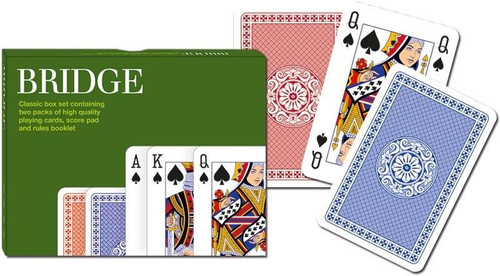 Klasyczne karty do gry w brydża Piatnika z serii "New Classic". W komplecie 2 talie oraz lista do zapisywania wyników, idealne do gry w brydża.