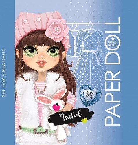 Papierowa lalka do zabawy - Isabel. W środku znajdziesz wiele różnych strojów, w które możesz ją przebrać. Pokoloruj ją, a następnie wytnij z książeczki, potem ubierz - zaginając specjalnie zaznaczone krawędzie. Stroje mają wyraźne oznaczenia pokazujące, gdzie wyciąć, aby ubrania pasowały na lalkę. Baw się nimi opowiadając najróżniejsze historie. Potem możesz przebrać lalkę i zacząć zabawę od nowa. Wyprodukowano na Ukrainie.