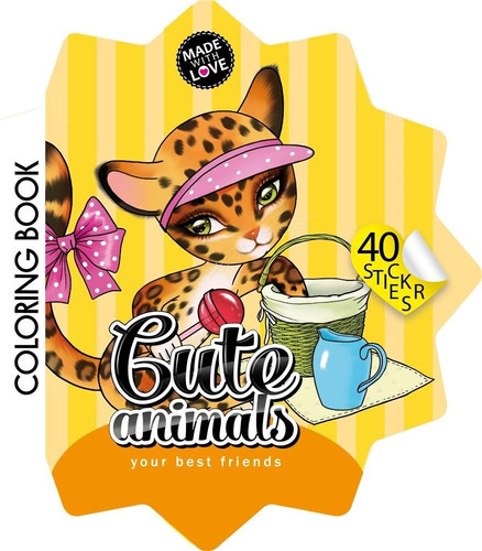 Kolorowanka dla dzieci w kształcie kwiatka, z magicznymi zwierzątkami. W zestawie 40 naklejek. Wyprodukowano na Ukrainie.