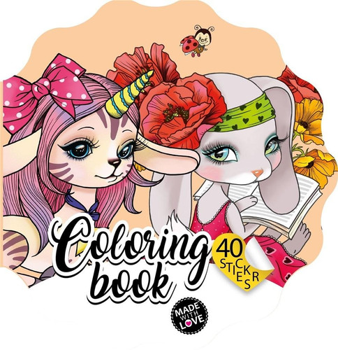 Kolorowanka dla dzieci w kształcie kwiatka, z magicznymi zwierzątkami. W zestawie 40 naklejek. Wyprodukowano na Ukrainie.