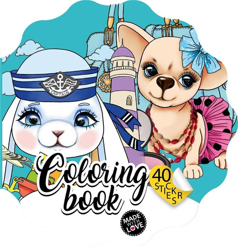Kolorowanka dla dzieci w kształcie kwiatka, z magicznymi zwierzątkami. W zestawie 40 naklejek. Wyprodukowano na Ukrainie.
