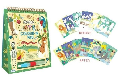 Kolorowanka wodna z pisakiem i podpórką to świetna zabawa dla najmłodszych. Wystarczy napełnić pisak wodą i zachęcić dziecko do kreatywnej zabawy, aby zobaczyć, jak kolory i kształty magicznie się pojawiają, a po wyschnięciu znikają. Dziecko będzie się świetnie bawić, odkrywając dzikie zwierzęta, kolorową, bujną roślinność i nie tylko. Sześć zabawnych kart jest połączonych w spiralnie oprawionej okładce, dzięki czemu można je odwracać po ukończeniu. Podpórka wygodnie podtrzymuje karty wielokrotnego użytku. Po zakończeniu zabawy wystarczy złożyć podpórkę, a dzięki elastycznej gumce pisak zawsze będzie na swoim miejscu.