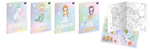 Format: A4. Liczba kartek: 16. Seria czterech książeczek z kolorowankami przeznaczona dla dzieci powyżej 3 lat. Duże naklejki w zestawie. Tytuły dostępne w serii: Jednorożce, Syrenki, Księżniczki, Elfy.