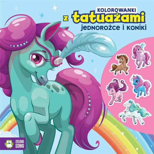 Wejdź do świata jednorożców i koników, koloruj obrazki, rozwiązuj zadania i łamigłówki. Kolorowanki zawierają zmywalne tatuaże, które gwarantują dobrą zabawę. To książka idealna do wspólnego spędzania czasu z najbliższymi!