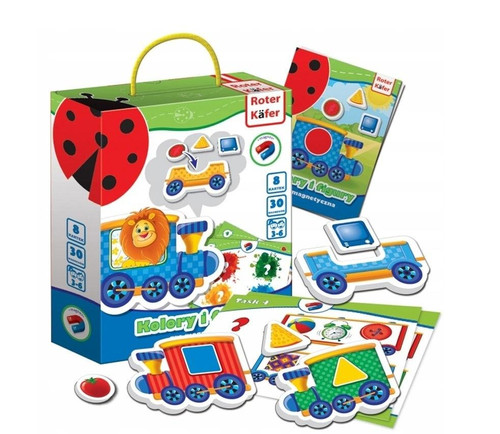 Układaj magnetyczne puzzle na specjalnej tablicy lub na innej powierzchni. Zabierz dziecko do magicznej krainy figur geometrycznych i kształtów. W komplecie gry znajdują się 4 lokomotywy z ilustracją czterech podstawowych figur geometrycznych, a każda lokomotywa ma 3 wagoniki. Zadaniem dziecka będzie włożenie do wagoników przedmiotów o odpowiednim kolorze i kształcie. Na kartach znajdziesz różnorodne zadania, wykonaj je i przypnij odpowiednie magnesy. W instrukcji znajdziesz opisane dodatkowe warianty gry, ale zabawę można urozmaicić poprzez wymyślanie własnych zadań, zwiększając kreatywność dziecka.