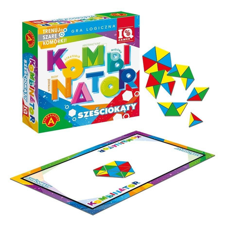 Kombinator Sześciokąty to wyjątkowa gra logiczna dla tych którzy lubią łamigłówki, planowanie i strategiczne myślenie oraz chcą się zmierzyć z innymi w tej gimnastyce umysłu. Na planszy znajduje się figura geometryczna zbudowana na planie sześciokąta. Zadanie polega na uzupełnieniu jej mniejszymi figurami w różnym kształcie oraz wielu kolorach (każdy bok w innym) w ten sposób, aby kolejno dokładając elementy uzyskać największą powierzchnię w tym samym kolorze.