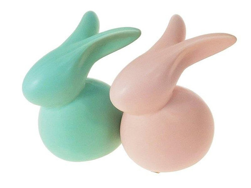 Dekoracja królik ceramiczny 13x12x8,5cm, różowy i miętowy