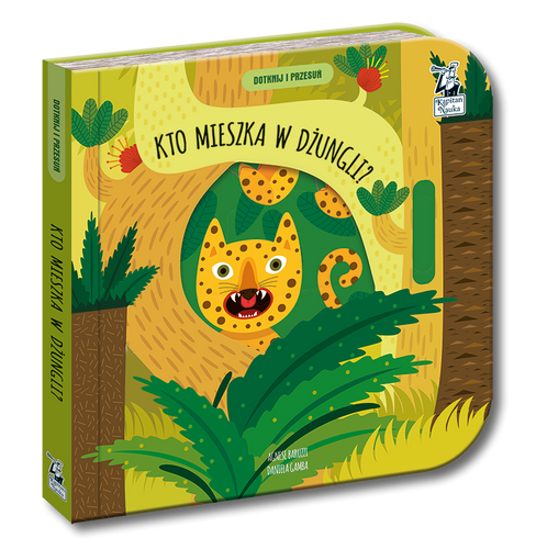 Dotknij i przesuń. Kto mieszka w dżungli? to inspirowana zabawą w „a kuku” książka dla maluchów, która ukazuje zaskakujące zmiany w dzikiej dżungli. Wystarczy jeden ruch paluszkiem, by odkryć, kto skrył się w liściach lub wśród egzotycznych kwiatów. Barwne ilustracje pozwalają dostrzec podobieństwa w przyrodzie oraz poznawać kolory i kształty. Dzięki nim dzieci odkryją m.in. węża zwisającego niczym liana z gałęzi, kudłatego goryla i odpoczywającego w wodzie krokodyla. Wierszowane i rymowane teksty rozwijają wyobraźnię dziecka i wzbogacają słownictwo, a ruchome elementy zachęcają do manipulacji i stymulują sprawność manualną.