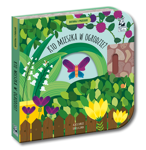 Dotknij i przesuń. Kto mieszka w ogrodzie? to inspirowana zabawą w „a kuku” książka dla maluchów, która ukazuje zaskakujące zmiany w ogrodzie latem. Wystarczy jeden ruch paluszkiem, by odkryć, kto mieszka wśród krzewów lub wolno pełznie po ziemi. Barwne ilustracje pozwalają dostrzec podobieństwa w przyrodzie oraz poznawać kolory i kształty. Dzięki nim dzieci odkryją m.in. brązowego jeża w koszyku z kasztanami, ptasią mamę, która wróciła do gniazda, oraz biedronkę skrytą na czerwonym tulipanie. Wierszowane i rymowane teksty rozwijają wyobraźnię dziecka i wzbogacają słownictwo, a ruchome elementy zachęcają do manipulacji i stymulują sprawność manualną.