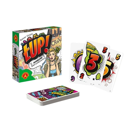 ŁUP! to szybka gra karciana, w której staracie się zbliżyć do łącznej wartości 21 punktów, ale jej nie przekroczyć. Każda karta to cios o różnej sile zadany przeciwnikom od lekkiego Puk! czy Pac! za 1 i 2 punkty, aż do totalnego łomotu za 7. Po kolei dorzucacie karty do puli leżącej na stole. Puk! Pac! Szast! Prast! i przed twoim ruchem na stole jest 14 punktów. Idealnie, bo na ręku wciąż masz Łomot!. No to łup! Dokładasz do 21 oczek i zgarniasz wszystko. To twój łup w tej rundzie.