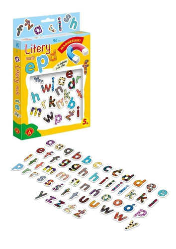 Magnesiaki Małe Litery to zestaw tematycznych obrazków, powleczonych magnetyczną folią na odwrocie. Dzięki temu obrazki można układać nie tylko na stole lub podłodze, można je również ustawiać na pionowej ścianie lodówki lub innych metalowych płaszczyznach. Serię wyróżnia przede wszystkim bardzo ładna grafika, duże rozmiary, oraz gruba tektura, pozwalająca dzieciom na łatwy chwyt. Strona z obrazkiem powleczona została folią, aby łatwo było je czyścić