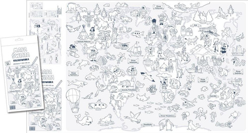 Ze składaną kolorowanką "Mapa świata" dzieci mogą wyruszyć w swoją pierwszą podróż dookoła globu. Poznają przy tym zwierzęta, rośliny, symbole i postacie charakterystyczne dla poszczególnych kontynentów. Kredki w dłoń! Ogromny, ilustrowany arkusz o wymiarach 100 x 60 cm jest do dyspozycji małego artysty.
