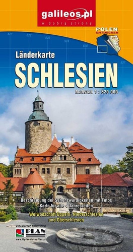 Mapa turystyczna Śląska z polskim i niemieckim nazewnictwem. Na rewersie opis turystyczny najważniejszych atrakcji turystycznych.