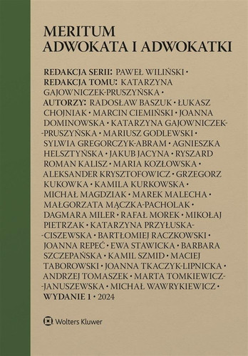 Poradnik przedstawia wszystkie praktyczne aspekty wykonywania zawodu adwokata w Polsce. Jest dziełem ponad 30 autorek i autorów - wybitnych specjalistów, przedstawicieli tej profesji. Z "Meritum adwokata i adwokatki" dowiesz się między innymi: Jak założyć i prowadzić kancelarię? Publikacja zawiera praktyczne wskazówki, w których autorzy dzielą się swoim doświadczeniem i radzą, jak skutecznie zarządzać kancelarią adwokacką. Jak podejmować skuteczne działania marketingowe? Poruszone są zagadnienia związane z reklamą i działalnością marketingową w praktyce zawodowej, w tym w mediach społecznościowych. Omówione są także wskazówki, co klientów motywuje do podjęcia współpracy z kancelarią a co stanowi dla nich barierę. Jak ustalać systemy wynagrodzenia z klientami? Autorzy omawiają różne modele wynagradzania i podpowiadają, jakie rozwiązania są najkorzystniejsze (m. in. stawka godzinowa, ryczałt, system ryczałtowo-godzinowy, stałą opłata za sprawę, success fee). Jak wdrożyć i stosować procedury AML (Anti Money Laundering)? Poradnik wskazuje podstawowe regulacje oraz gdzie można znaleźć wzory procedur i oświadczeń oraz jakie kary grożą za niewykonanie obowiązków nałożonych ustawą (m. in. w przypadku adwokatów do wysokości równowartości kwoty 1 000 000 euro). Jak skutecznie zadbać o bezpieczeństwo danych w kancelarii? Autorzy wyjaśniają jakie konkretne środki techniczne i organizacyjne należy wdrożyć aby wypełnić obowiązki nałożone prawem. Wskazują jak w praktyce należy chronić dane przetwarzane zarówno w formie papierowej jak i elektronicznej. Autorzy dużo uwagi poświęcają researchowi prawnemu. Przedstawiają wskazówki, jak skutecznie pozyskiwać informacje zarówno z publicznych baz danych, jak i komercyjnych systemów informacji prawnej. Szczegółowo omawiają ponadto: postępowanie dyscyplinarne, zasady reprezentacji klientów wyznaczonych z urzędu w różnych kategoriach spraw, reprezentację dziecka oraz występowanie jako kurator dla osoby nieznanej z miejsca pobytu, praktyczne aspekty świadczenia nieodpłatnej pomocy prawnej, metodykę prowadzenia spraw z zakresu wielu dziedzin prawa, reprezentację klientów przed Europejskim Trybunałem Praw Człowieka i Trybunałem Sprawiedliwości UE. Publikacja jest przeznaczona przede wszystkim adwokatek i adwokatów już prowadzących lub rozpoczynających działalność zawodową, a także dla aplikantów prawniczych; zainteresuje również przedstawicieli innych zawodów prawniczych, którzy planują podjąć nowe wyzwania zawodowe. "Nikt wcześniej nie zdecydował się na przygotowanie pozycji, która podejmowałaby te zagadnienia, i to w tak szerokim zakresie. Odnajdą bowiem Państwo w publikacji kompleksową wiedzę o zasadach funkcjonowania samorządu zawodowego, przebiegu aplikacji adwokackiej, warunkach wykonywania zawodu, w tym o praktycznych aspektach zakładania, działalności i likwidacji kancelarii adwokackiej. Rozdziały poświęcone metodom prowadzenia określonych spraw, w tym specyfice postępowań z urzędu oraz istocie innych, dodatkowych ról adwokackich, stanowią cenne źródło praktycznych wskazówek. () Informacje o specyfice i różnych formach wykonywania tego zawodu, świadczenia nieodpłatnej pomocy prawnej, funkcji kuratora, arbitra lub mediatora mogą uświadomić Czytelnikom wymagania i bariery w codziennej pracy zawodowej członków i członkiń palestry." Ze wstępu adw. dr Katarzyny Gajowniczek-Pruszyńskiej