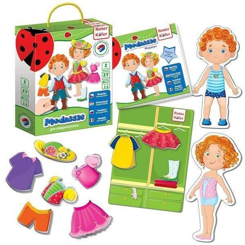 Magnetyczna gra Modnisie to zestaw trójwymiarowych magnesów pozwalających na fascynującą zabawę dla małych stylistów. Układaj magnetyczne puzzle na specjalnej tablicy lub na innej powierzchni. Gra pomoże nauczyć się jak dopasowywać poszczególne stroje do okazji, np. wizytowa, sportowa czy do spania zarówno dla dziewczynki, jak i chłopca. Korzystając z modeli oraz podpowiedzi z magazynu mody, dziecko skojarzy jakie elementy garnituru należy połączyć, a które nie. Nauczy się poprawnie dobierać wszystkie detale do jednego stylu i dopasowywać je ze smakiem. Gra rozwija twórcze zdolności i gust.