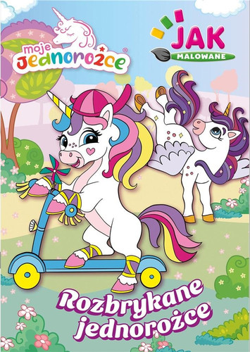 Książka Moje jednorożce. Jak malowane to kolorowanka, w której wystarczy wykorzystać załączone paletki farbek wodnych, by dodać ulubionym postaciom barw. Świat magicznych jednorożców stanie się kolorowy!