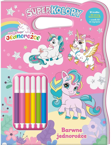 Książka SUPERKOLORY to atrakcyjne kolorowanki z rysunkami ulubionych bohaterów. Do każdej z publikacji dołączone są piękne flamastry. Wystarczy, że dziecko pomaluje obrazek, a rysunki z postaciami ulubieńców nabiorą kolorów. Świetna zabawa gwarantowana!
