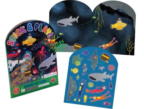 Zestaw Naklejek Wielokrotnego Użytku z planszami to świetna zabawa i nauka jednocześnie. W skład zestawu wchodzi ponad 50 zabawnych naklejek, w tym płetwonurków, rekiny, rozgwiazdy, skarby piratów i wiele innych, oraz 2 rozkładane plansze ilustrujące morska głebinę do tworzenia i wymyślania historii za pomocą naklejek. Naklejki można łatwo umieszczać, nakładać na siebie i zmieniać ich położenie. Dodatkową atrakcją jest dopasowywanie naklejek do ich kształtów na kartach do przechowywania, co zapewni maluchom rozrywkę na długie godziny! Zestaw daje dzieciom nieograniczone możliwości wyrażania swojej kreatywności, ćwiczy koncentrację i wyobraźnię, a także rozwija małą motorykę. Zapakowany jest w twardą okładkę, składa się całkowicie na płasko, dzięki czemu idealnie sprawdzi się w podróży. Cechy: