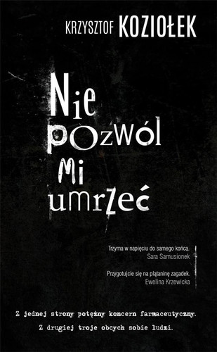 Damian Saran zgłasza na policji zaginięcie żony, która nie wróciła do domu z pracy w agencji reklamowej. Dalia Chyba przeżywa trudne chwile po rozwodzie będącym efektem rodzinnej tragedii. Komisarz Ryszard Grodzki sprawdza okoliczności śmiertelnego wypadku bliskiej osoby starego znajomego.Pozornie niezwiązane ze sobą sprawy łączą się, kiedy wszyscy troje stają na drodze szczepionki, która lada chwila ma trafić na rynek. Na jednej szali znajdą się tysiące ludzkich istnień, na drugiej miliardowe zyski.To będzie walka na śmierć i życie."Nie pozwól mi umrzeć" to ekscytujący thriller medyczny, w którym sprawy pozornie niemające ze sobą związku nagle się łączą. Książka niesamowicie wciąga, zaskakuje i uświadamia, że tuż obok nas toczą się rozgrywki, o jakich nie mamy pojęcia. Przygotujcie się na plątaninę zagadek i na kluczenie między dobrem a złem, gdzie stawką są bajońskie sumy oraz... ludzkie życie. Nie będziecie się nudzić!Ewelina Krzewickablog "Ejotkowe postrzeganie świata"Krzysztof Koziołek po raz kolejny odważył się podjąć kontrowersyjny temat. Jego thriller medyczny wywołał we mnie skrajne emocje. Po lekturze długo nie mogłam ochłonąć. Ta historia trzyma w napięciu aż do samego końca, a przy tym porusza najczulsze struny. Przerażające, że taki dramat mógłby dotknąć praktycznie każdego z nas.Sara Samusionekblog "Literacki kącik Sary"