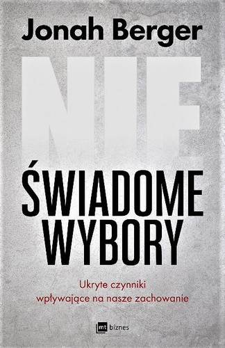 W swojej zaskakującej i przemawiającej do przekonania książce Nieświadome wybory Jonah Berger zestawia ze sobą wnioski z badań naukowych prowadzonych w dziedzinie biznesu, psychologii oraz nauk społecznych, aby pomóc nam lepiej zrozumieć subtelne i niewidzialne siły kształtujące nasze indywidualne wybory. Uzmysłowienie sobie istnienia takich sił pomaga nam przytomnie decydować, kiedy chcemy ulec ich oddziaływaniu, a kiedy należy im się oprzeć. Dzięki tej wiedzy możemy dokonywać bardziej świadomych rozstrzygnięć i w większym stopniu kontrolować własne zachowania.