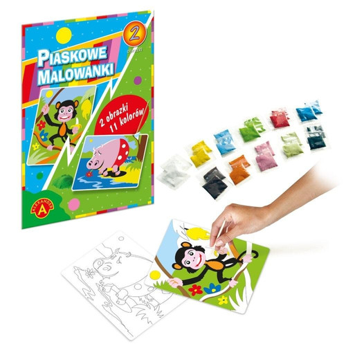 Uwielbiana przez dzieci, artystyczna zabawa malowania piaskiem, polegająca na odsłanianiu kolejno poszczególnych, naciętych elementów obrazka, tak by odkryć klejącą powierzchnię. Odsłonięte elementy posypuje się piaskiem, w kolorze zgodnym ze wzorem lub według własnej wyobraźni, tworząc piękną ilustrację.