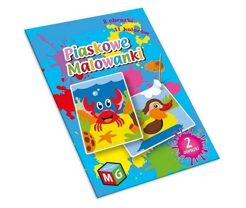 Zawartość pudełka: 2 obrazki do kolorowania, patyczek, 10 woreczków kolorowego piasku, instrukcja.