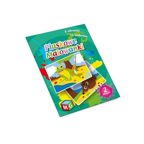 Zawartość pudełka: 2 obrazki do kolorowania, patyczek, 10 woreczków kolorowego piasku, instrukcja.