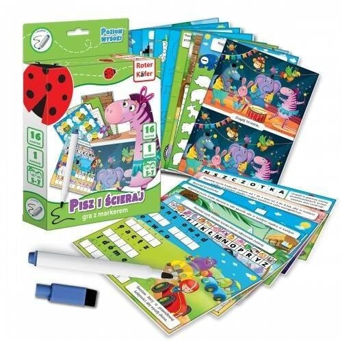Gra z markerem: pisz i ścieraj (poziom wysoki). Wybierz kartkę, która ci odpowiada.Wykonuj zadania przy pomocy markera.Ścieraj marker gąbką i znów maluj do woli.