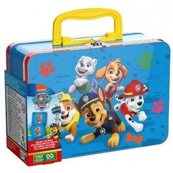 Gra z kartami memory inspirowana bajką Psi Patrol zamknięta została w metalowej walizce z żółtym uchwytem, co zdecydowanie ułatwia przechowywanie i sprawia, że po skończonej zabawie karty będą znajdywać się w jednym miejscu. Walizeczka jest niebieskiego koloru i posiada ilustracje z Chasem, Marshallem, Skye, Rubblem i Everest.