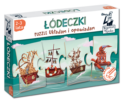 Łódeczki to wyjątkowa, dłuuuga układanka przygotowana z myślą o najmłodszych dzieciach. Duże, trwałe, wykonane z grubej tektury elementy z łatwością dopasuje do siebie nawet dwulatek. Dzięki dużemu formatowi 10-częściowych puzzli zabawa dostarczy dzieciom wiele radości, ćwicząc przy tym motorykę małą, umiejętność rozpoznawania kształtów i dopasowywania elementów.