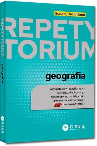 Przedstawiamy Repetytorium - geografia, wchodzące w skład odświeżonej edycji znanej i popularnej serii Repetytorium Maturzysty, która już od lat towarzyszy kolejnym pokoleniom maturzystów. Książka jest w pełni zgodna z najnowszą podstawą programową i przeznaczona jest dla uczniów nowego czteroletniego liceum oraz pięcioletniego technikum.