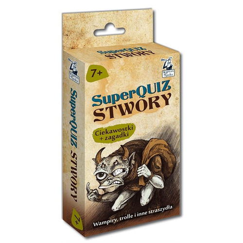 SuperQuiz Stwory zabierze poszukiwaczy tajemnic do świata mitologii z różnych zakątków Ziemi. Podczas fascynującej wyprawy do krainy stworów, strzyg i czarownic, mali odkrywcy poznają nie tylko popularne wampiry czy dżiny, lecz także całą grupę rodzimych magicznych stworzeń z wierzeń słowiańskich. Znajdą tu również monstra z mitologii celtyckiej, skandynawskiej czy japońskiej. Z SuperQuizu dowiedzą się, jak wyglądały legendarne stwory, gdzie żyły, co robiły i jak można było zapobiec ich działalności lub prosić je o pomoc.