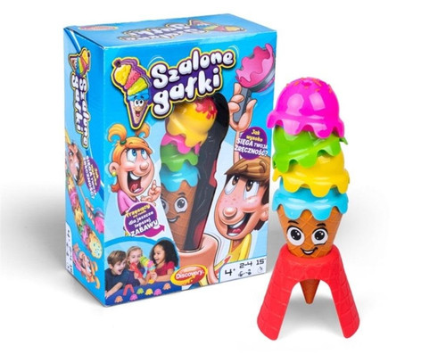 Jak wysoko sięga Twoja zręczność? Przekonaj się, podejmując wyzwanie Szalonych Gałek! Gracze mają za zadanie zbudować wspólnie lodową wieżę, umieszczając kolejno gałki na rożku, jedną na drugiej. Uwaga! Wesolutki rożek trzęsie się, utrudniając wykonanie zadania! Gracz, którego ruch przewróci wieżę, odpada z gry, a pozostali kontynuują zabawę, do momentu, aż w grze pozostanie tylko jeden gracz, zostaje on zwycięzcą!