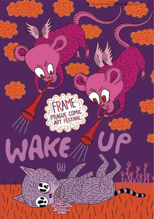Over 200 works were received for Wake Up competition during 1st Prague Comics Art Festival Frame. The anthology includes 96 works by artists from Argentina, Austria, Belgium, Brazil, Bulgaria, Czech Republic, Denmark, Estonia, Germany, Hungary, Ireland, Italy, Japan, Lithuania, Macedonia, Mexico, Norway, Poland, Portugal, Romania, Russia, Serbia, Slovakia, Sweden, The Netherlands, Turkey, UK, USA